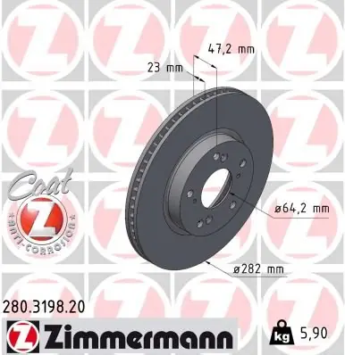 TARCZA HAMULC. HONDA CIVIC X 17- PRZÓD Tarcza hamulcowa ZIMMERMANN 280.3198.20 280.3198.20/ZIM ZIMMERMANN